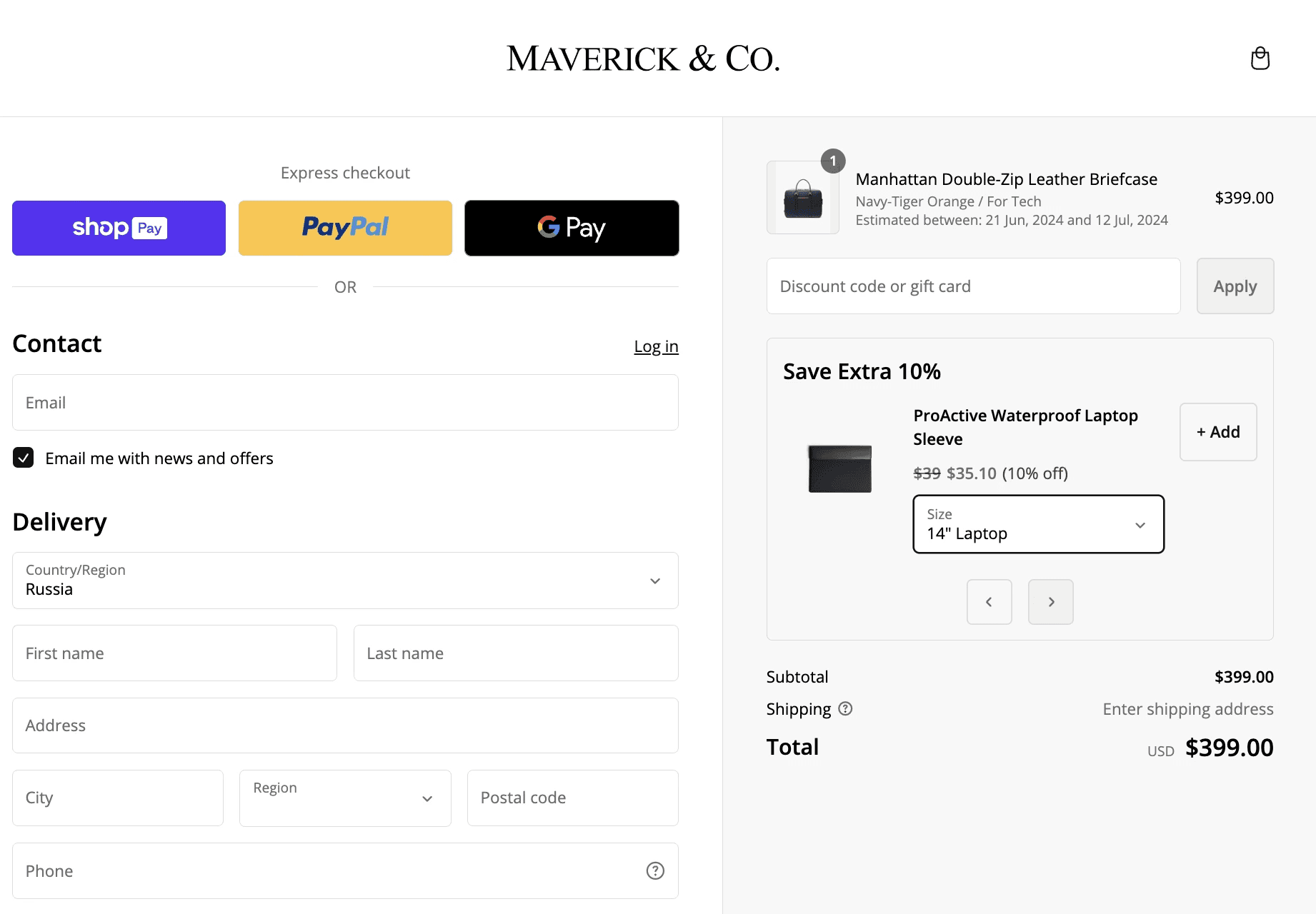 Maverick & Co is a global luggage brand selling across 10+ countries. Their Manhattan Briefcase was named Best Briefcase of 2024 by Forbes. They came to Monk looking for a way to gamify their native cart without replacing it , no cart drawers, no third-party overlays. Just their existing theme, made smarter.